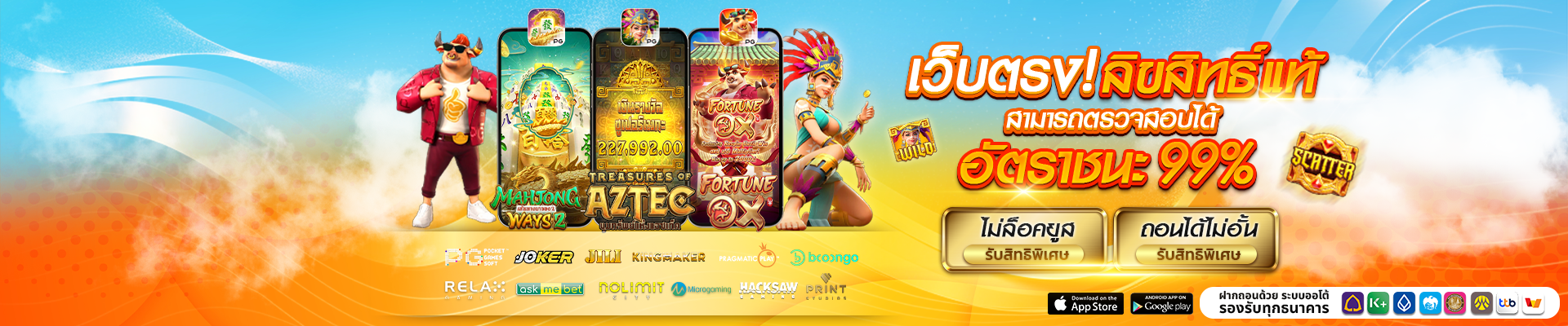 ระบบฝาก-ถอนของเราทำงานอัตโนมัติ 100% รวดเร็วทันใจภายใน 30 วินาที ไม่ต้องรอนาน และยังรองรับธนาคารชั้นนำครบทุกธนาคาร รวมถึง True Money Wallet ให้คุณทำรายการได้ตลอด 24 ชั่วโมง มั่นใจได้ว่าเงินของคุณปลอดภัย